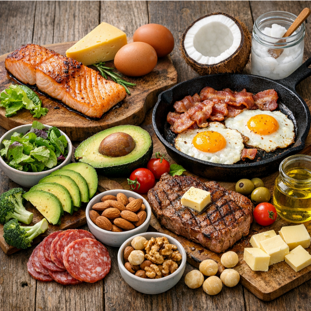 대표적으로는 소고기, 돼지고기, 닭고기, 달걀, 연어 같은 단백질 식품과 아보카도, 올리브오일, 버터, 견과류 같은 건강한 지방이 포함됩니다. 채소는 브로콜리, 시금치, 양배추처럼 당 함량이 낮은 채소 위주로 섭취하는 것이 좋습니다.